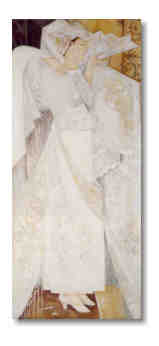 Goncharova's came from a well to do Russian family. She visited Paris in 1906, where she and her companion Mikhail Fedorovich Larionov examined the art of the Fauves and the proto-Cuhist work of Picasso. When she returned to Russia, she began to paint in a styles she had observed in Paris but soon thereafter she turned her attention to the Russian folk legacy and peasant art. Her interest in Futurism led her to collaborate with Larionov in the development of an abstract style they called "Rayonism." In 1915 she and Larionov settled permanently in Paris, where she turned her attention to stage design.