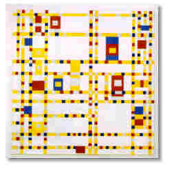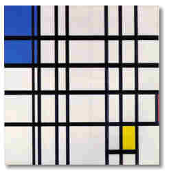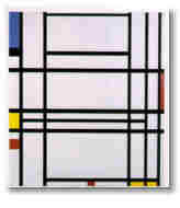 Mondrian began his career as a landscape painter after obtaining academic training In Amsterdam. Toward 1908, he began to lighten his palette and work in a neo-Impressionist manner until, in 1911, he took a studio in Paris and began a serious study of Cuhism. Mondrian's approach to Cubist principles soon led him far from figurative allusion. By 1914, when he returned to Holland, he had already reduced landscape motifs to their geometric essentials. In 191 7 he wrote his aesthetic credo ,calling his new style Neoplasticism, and with Theo van Doesburg founded the de Styl group. Mondrian's austere white canvases, with their vertical and horizontal lines and sparing use of primary colors, were important to the burgeoning schools of non objective artists, and were also influential in the fields of architecture and modern design. In 1938 Mondrian moved from Paris, where he had been living since 1919,to London, and in 1940 he settled in New York. There, he opened a new chapter in his theoretical exploration of line and color, composing works reflecting the urban rhythm of New York and its contemporary jazz.