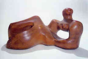 rhythm from the study of natural objects such as pebbles, rocks, bones, trees, shells, etc. Pebbles and rocks show nature's way of working stone. Smooth, sea-worn pebbles show the wearing away, rubbed treatment of stone and principles of asymmetry. Rocks show the hacked, hewn treatment of stone, and have a jagged nervous block rhythm. Bones have marvelous structural strength and hard tenseness of form, subtle transition of one shape into the next and great variety in section. Trees (tree trunks) show principles of growth and strength of joints, with easy passing of one section into the next. They give the ideal for wood sculpture, upward twisting movement. Shells show nature's hard but hollow form (metal sculpture) and have a wonderful completeness of single shape. My aim in work is to combine, as intensely as possible, the abstract principles of sculpture along with the realization of my idea. Abstract qualities of design are essential to the value of a work, but to me of equal importance is the psychological, human element. If both abstract and human elements are welded together in a work, it must have a fuller,deeper meaning." [1934
